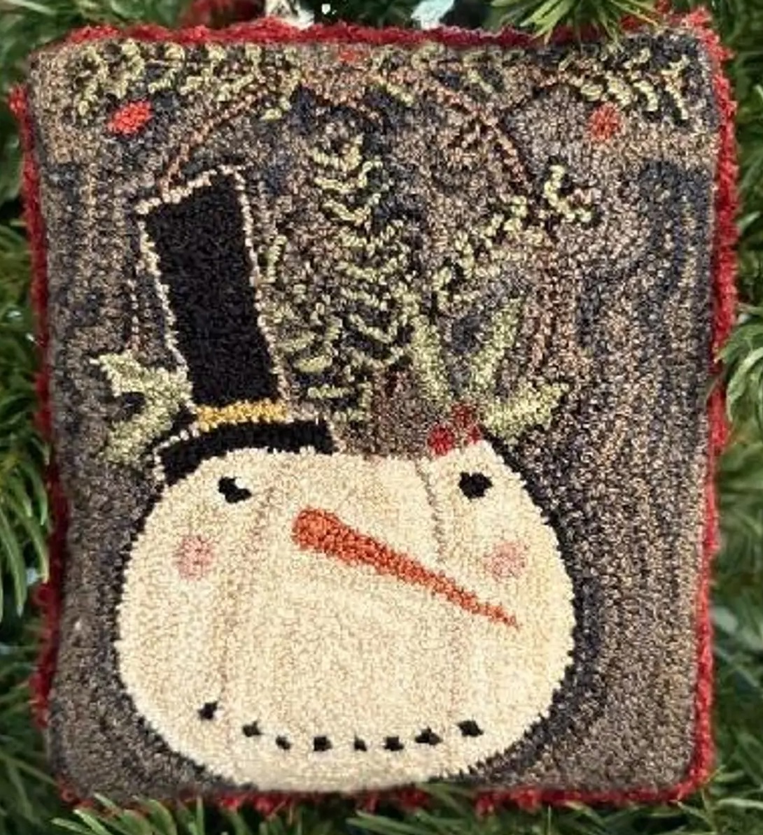 Bucket Head Snowman can be a wonderful addition to your winter or holiday decorating! He’s sporting a dapper top hat and has some winter greens coming out of his head too! Hook an antique dark background and use those snowy white textures for his face. Rosy cheeks and a wide coal grin will round out his whimsical look.