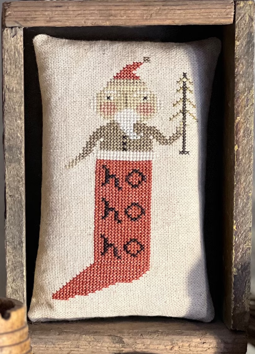Originally a cross stitch pattern, Lori has allowed me to adapt this fun Holiday design into a rug hooking pattern. I love the wee elf-like Santa tucked into the stocking! Give your color plan an aged look by using faded red and green textures.