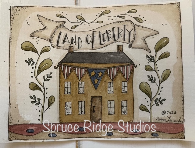 I love all of Robin’s designs but this has to be one of my favorites!  I love the mustard house with the red, white, and blue banner. Both light or dark backgrounds would work for this beauty!