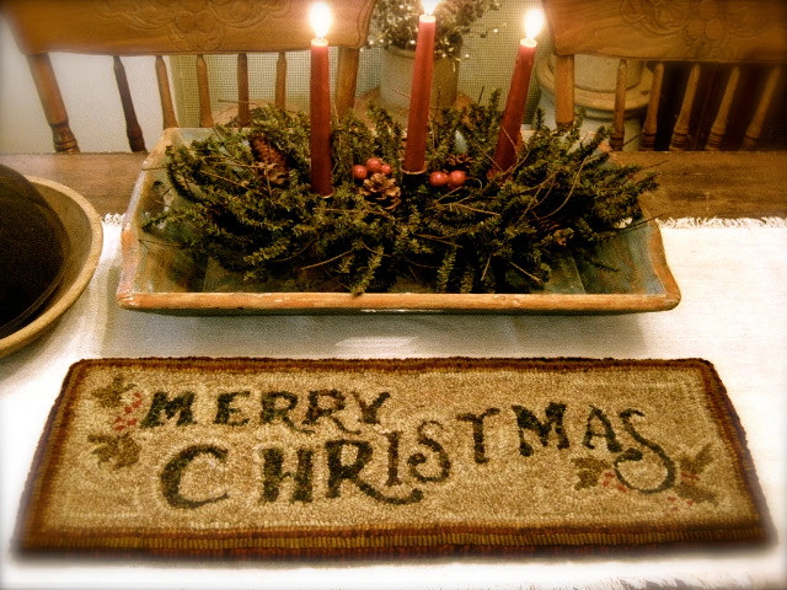 A lovely classic and traditional design that is perfect for a Christmas table….you’ll display it year after year!  This is Cathy’s most popular rug pattern